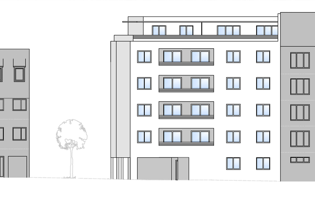 Durch die Errichtung dieses Objektes mit fünf Vollgeschossen und einem Dachgeschoss entstehen 19 Wohneinheiten mit kompakten 2– und 3–Zimmer Wohnungen, die zudem über Balkon, Loggia oder Terrasse verfügen. Das Objekt ist sowohl für den Bauträger geeignet, der Eigentumswohnungen erstellen möchte, insbesondere auch für den Mietwohnungsbau mit Verkauf an einen Globalanleger. Die Rüstig Immobilien Gruppe erwartet die Baugenehmigung Mitte 2023.